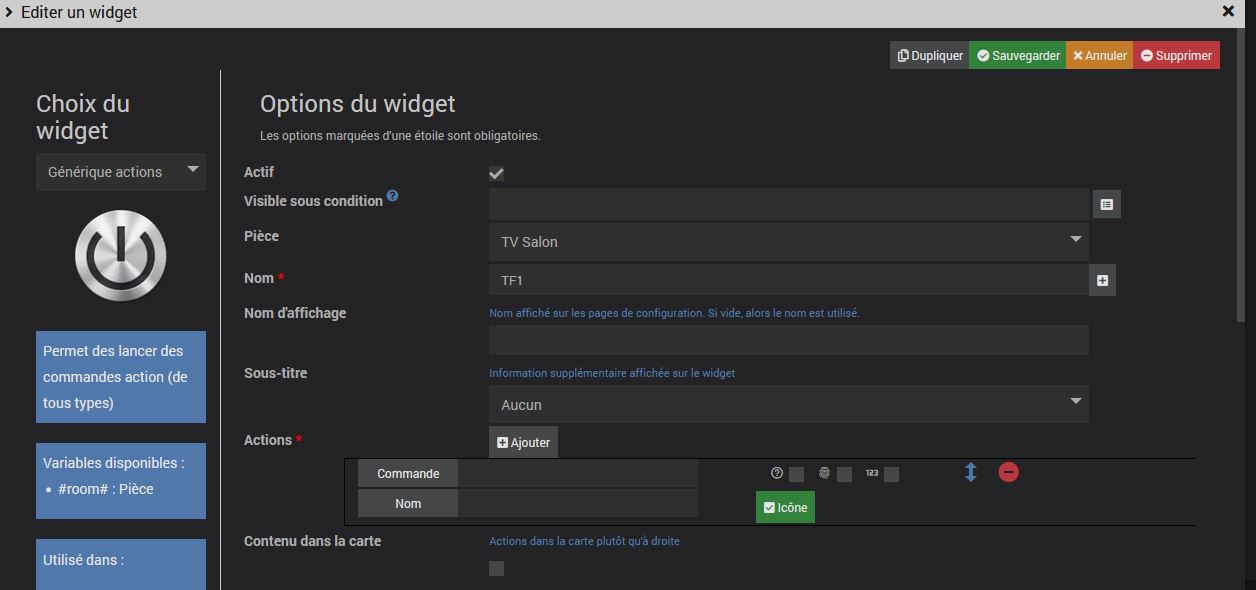 Ensuite, dans ta commande jeedom chaine 1, tu va dans les paramètres avancés … Puis action avant exécution de la commande