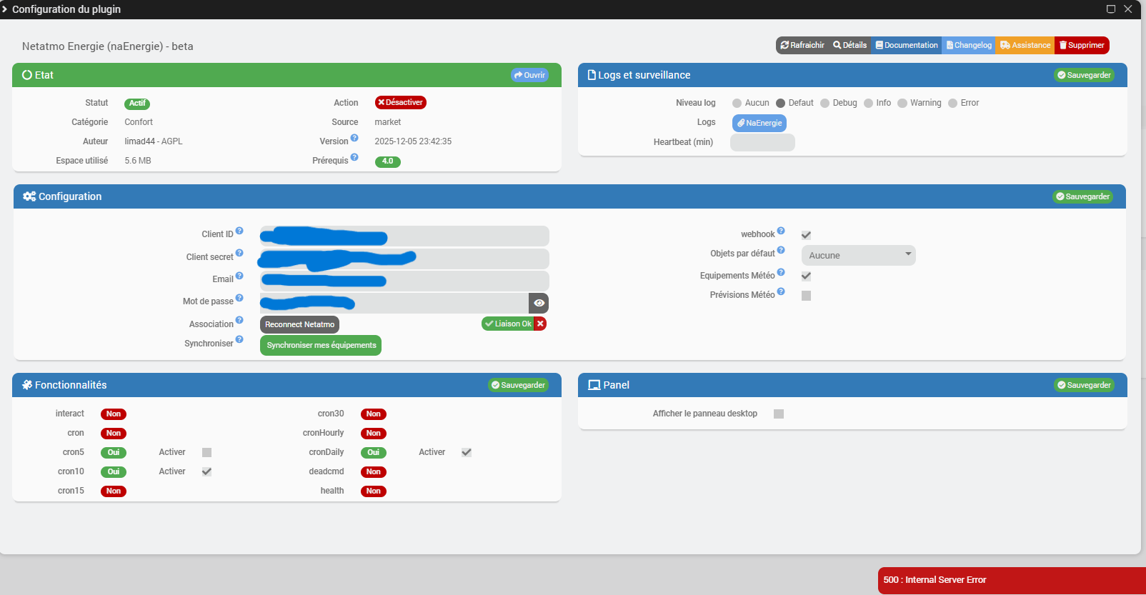 Après application de la mise à jour 4.5.2 (je ne sais pas si c’est lié mais j’en doute), j’ai cette erreur sur la synchro de mes équipements Netatmo.