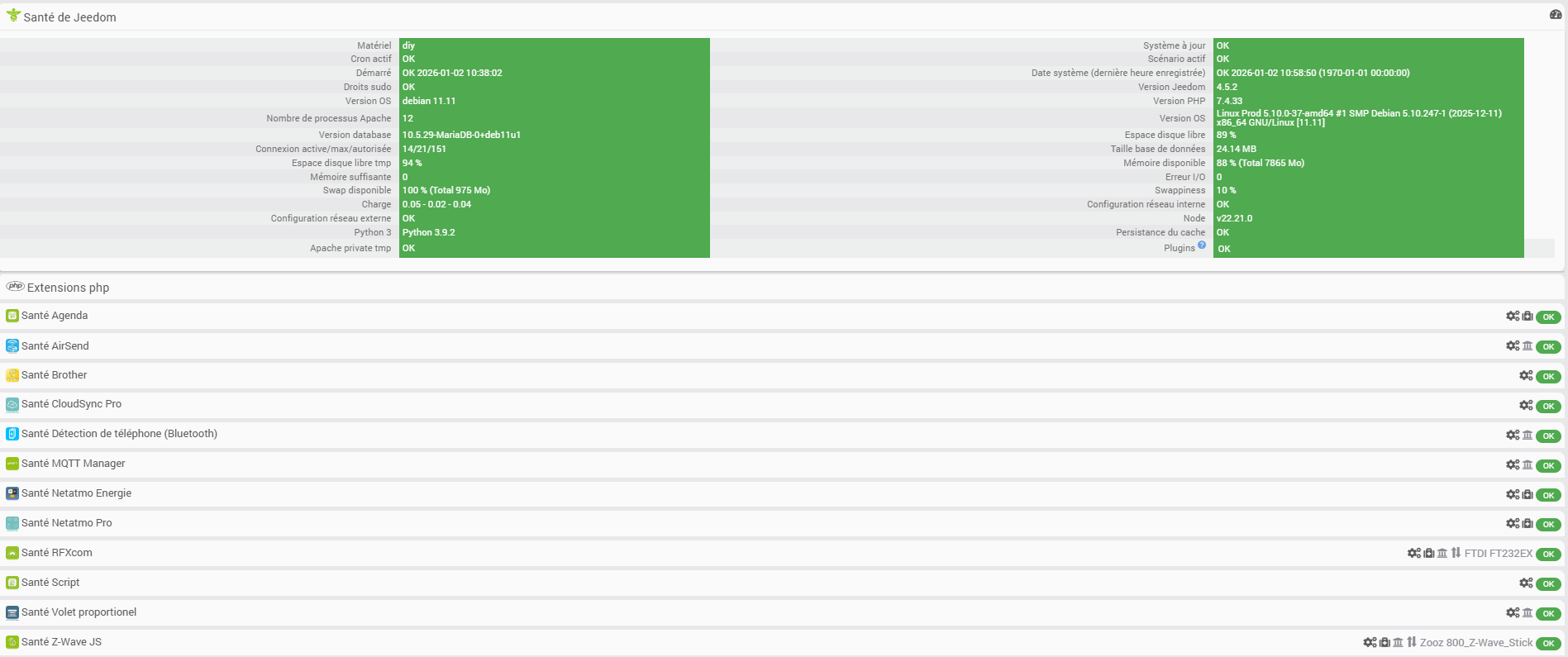 Informations Jeedom