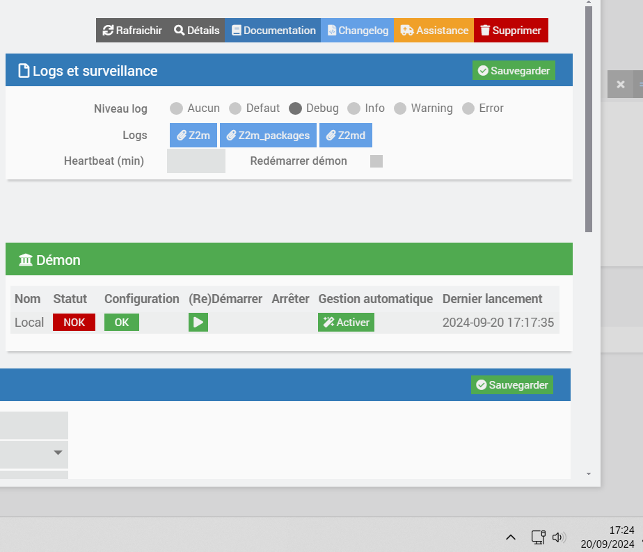 0226|[2024-09-20 17:20:04] DEBUG : [Chambre 2][Volet Porte fenêtre Bureau] Check for update state => "CLOSE", raw : "CLOSE"
