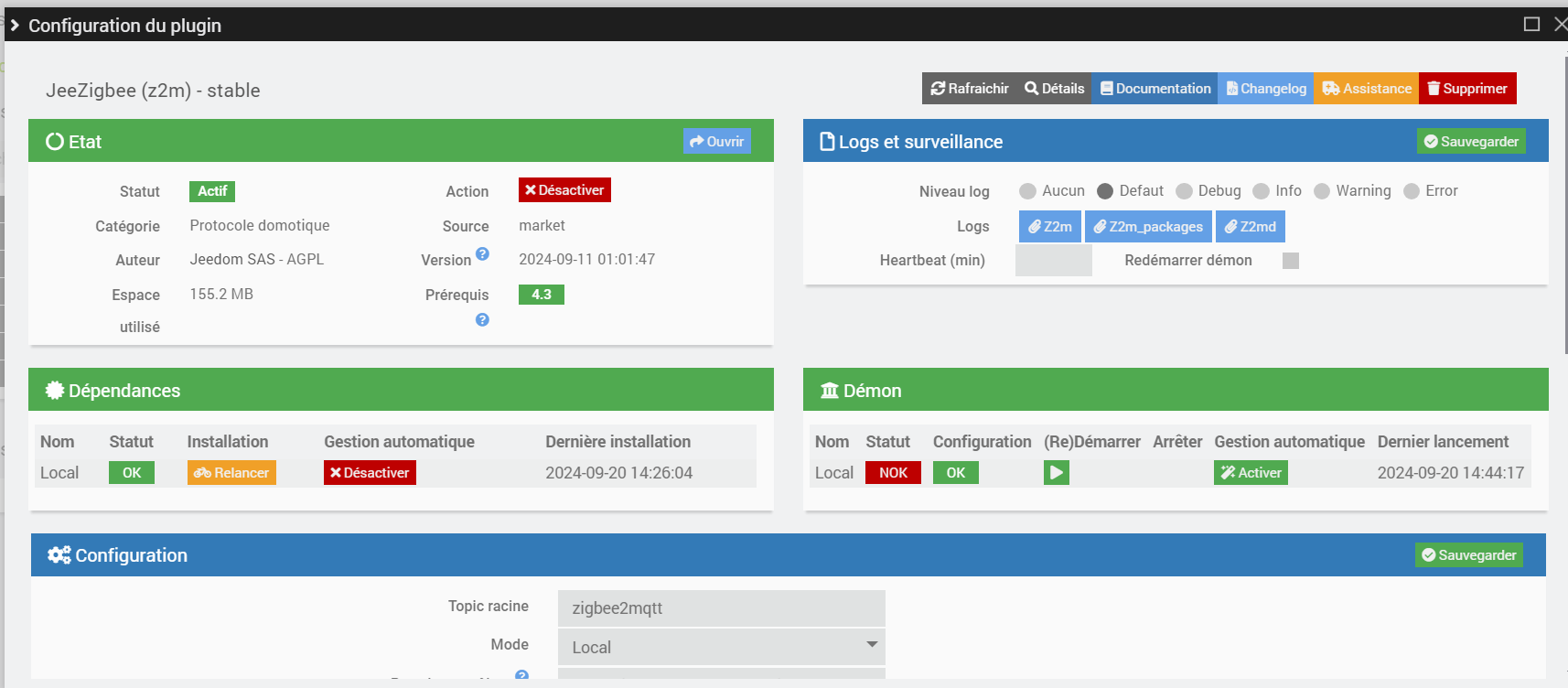 0217|[2024-09-20 17:20:02] DEBUG : [Chambre 1][Volet Chambre 1 Cédric] Check for update linkquality => 180, raw : 180