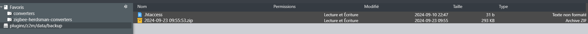 Par défaut, lors de l’installation du plugin, un dossier nommé backup est présent.