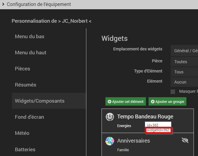 EDIT : Si, tu peux aussi supprimer simplement ton widget de ton équipement et le remettre … -je pense qu’il faut faire attention à le supprimer de tous les menus si il est dans plusieurs menus