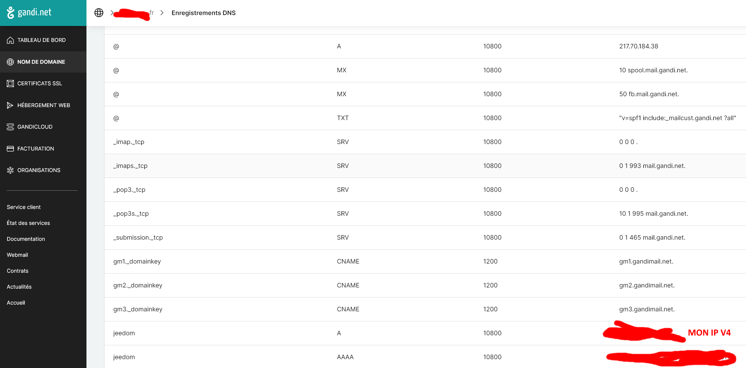 j’ai vu que tu a 2 enregistrement DNS sous le nom de jeedom