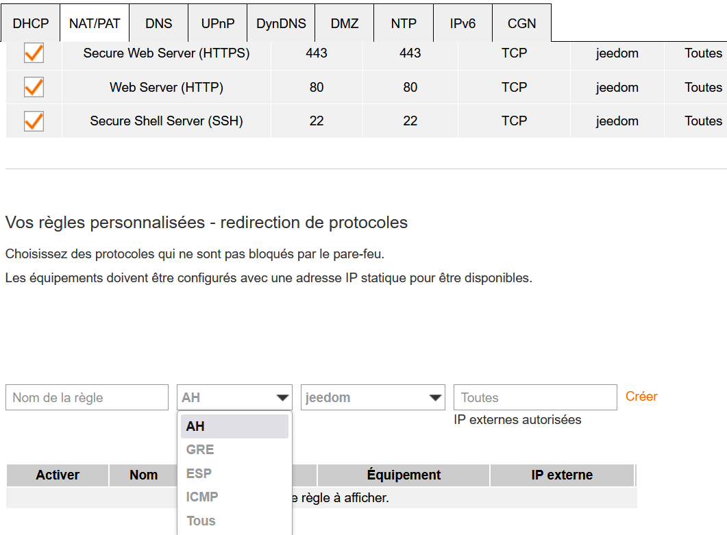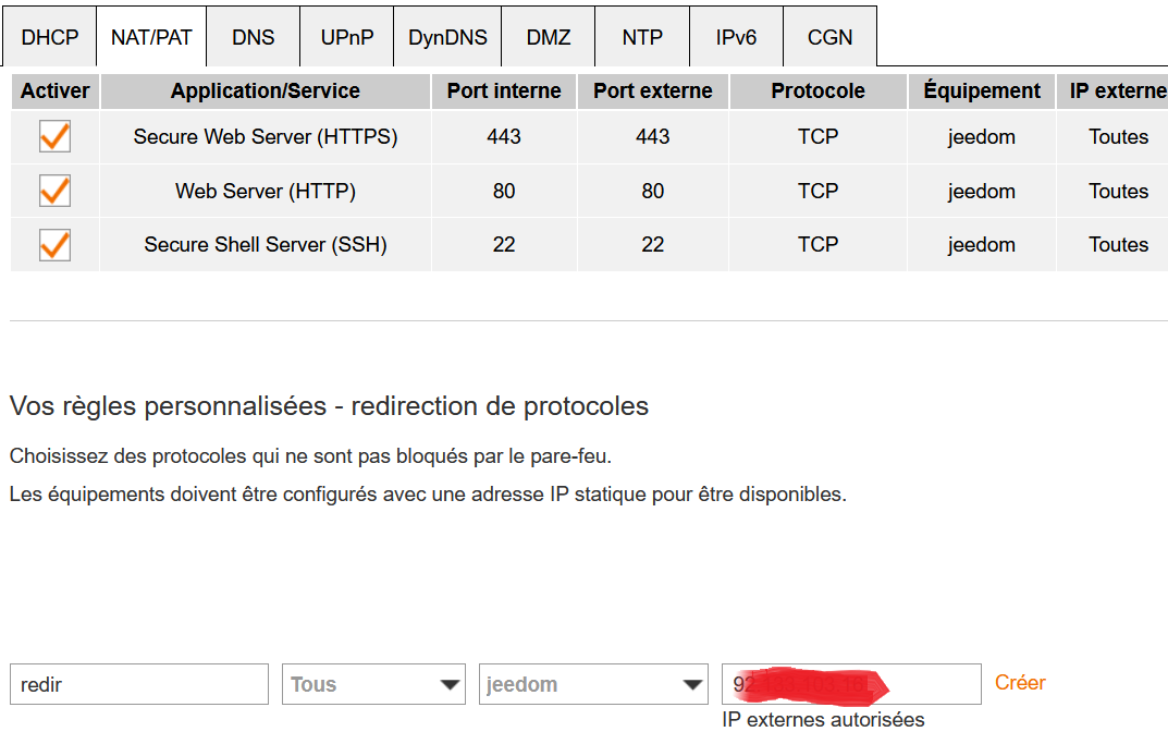 pour le port ssh (si tant est que tu en aies vraiment l utilitee depuis l exterieur!!) j aurais privilégié un port (externe) bcp + exotique que le 22 standard