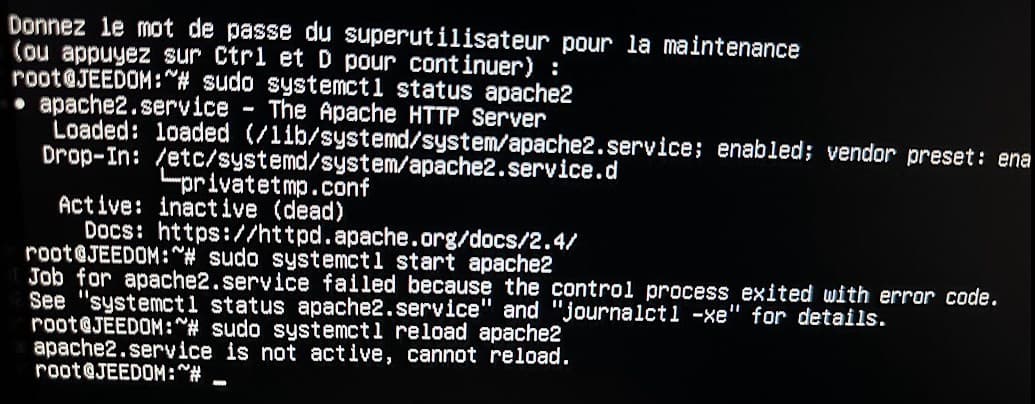 Il faudrait donc sy connecter et voir si apache2 tourne et donner des logs…
