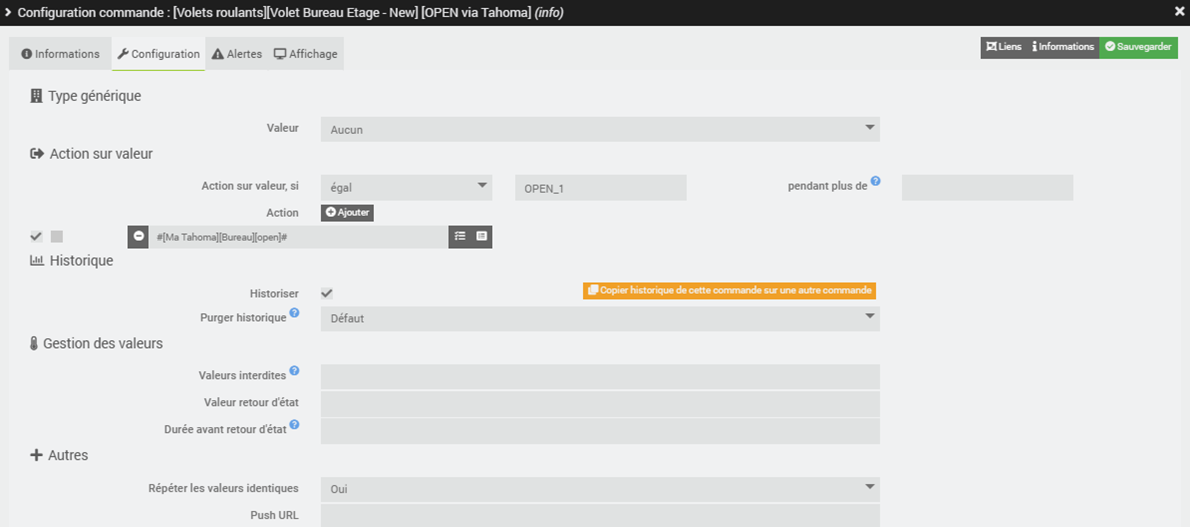 En fait je veux que jeedom pilote les volets roulants soit par l’api tahoma soit par le rf player en fonction d’une variable 0 ou 1.