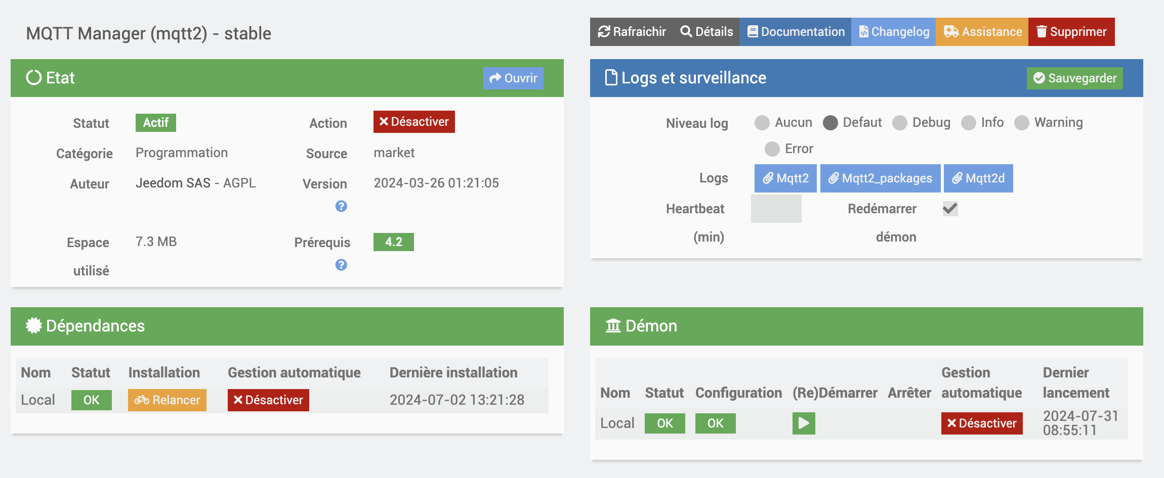 La page de configuration du plugin Mqtt manager
