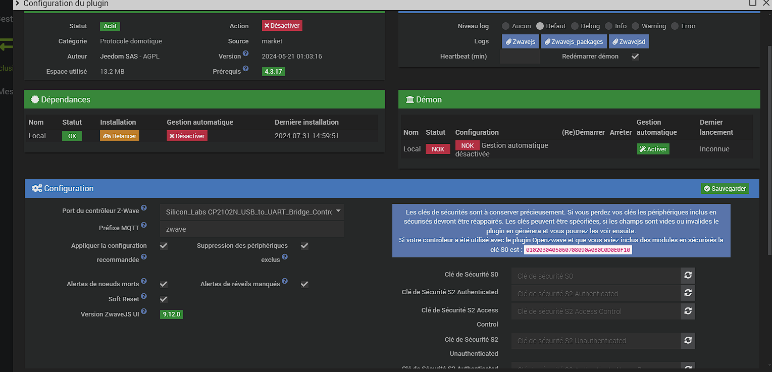 La page de configuration de plugin ZwaveJS