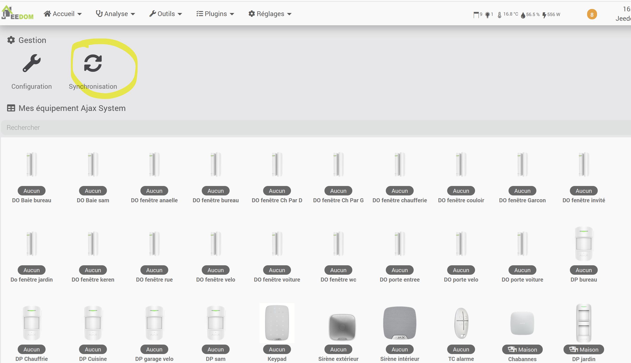 Depuis quelques jours, l’état de mon système ne se met plus à jour automatiquement. Lorsque je passe du mode Nuit à Désarmé ou Armé, je dois cliquer manuellement sur « Synchroniser » pour que l’affichage s’actualise.