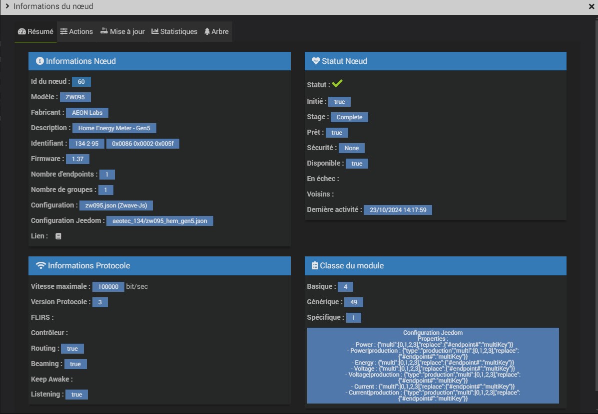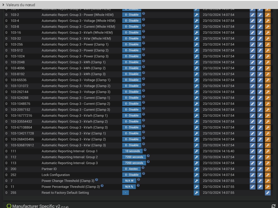 Je n’arrive pas à actualiser les données de la pince ampèremétrique Aeotec gen5.
