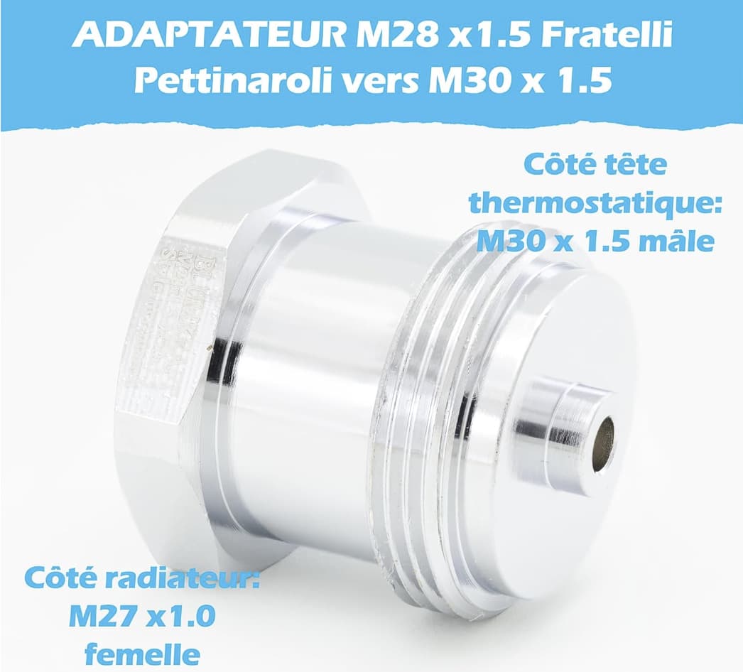 je bute depuis deux jours sur la recherche désespérée d’un adaptateur de tête thermostatique. J’ai en effet reçu la tête connectée MOES et je m’aperçois que le diamètre est du m30 alors que mes radiateurs sont des M28.
