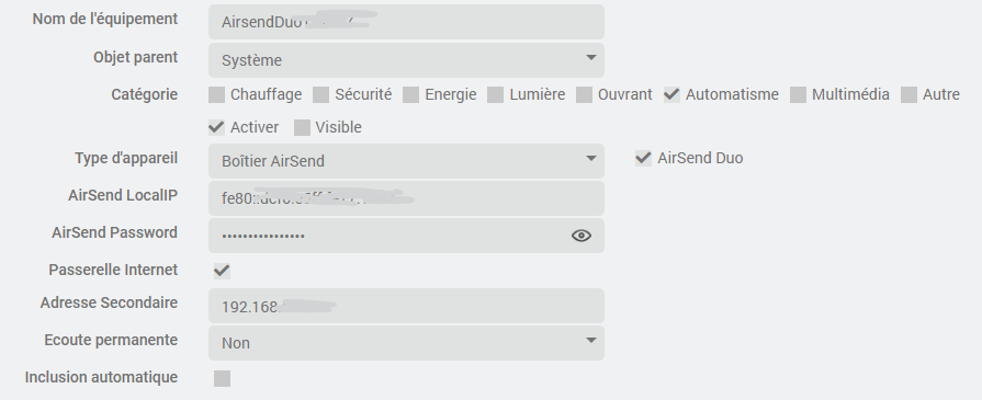 la copie d écran indique la config de jeedom mais ma question était plus orienté sur le boitier airsend. En effet quand on scanne le QRcode du boitier airsend l appli airsend affecte une ip v6 ,pas de passerelle et adresse secondaire vide