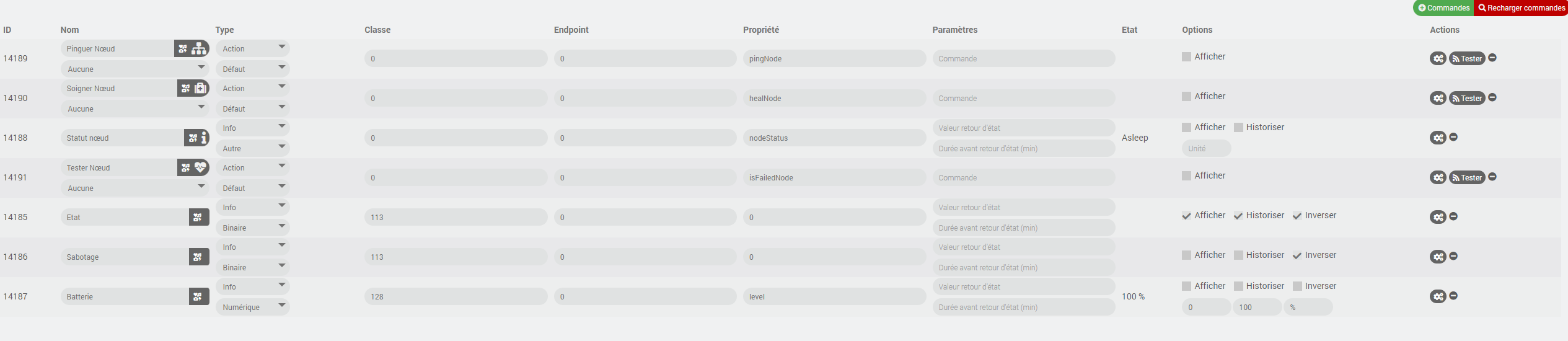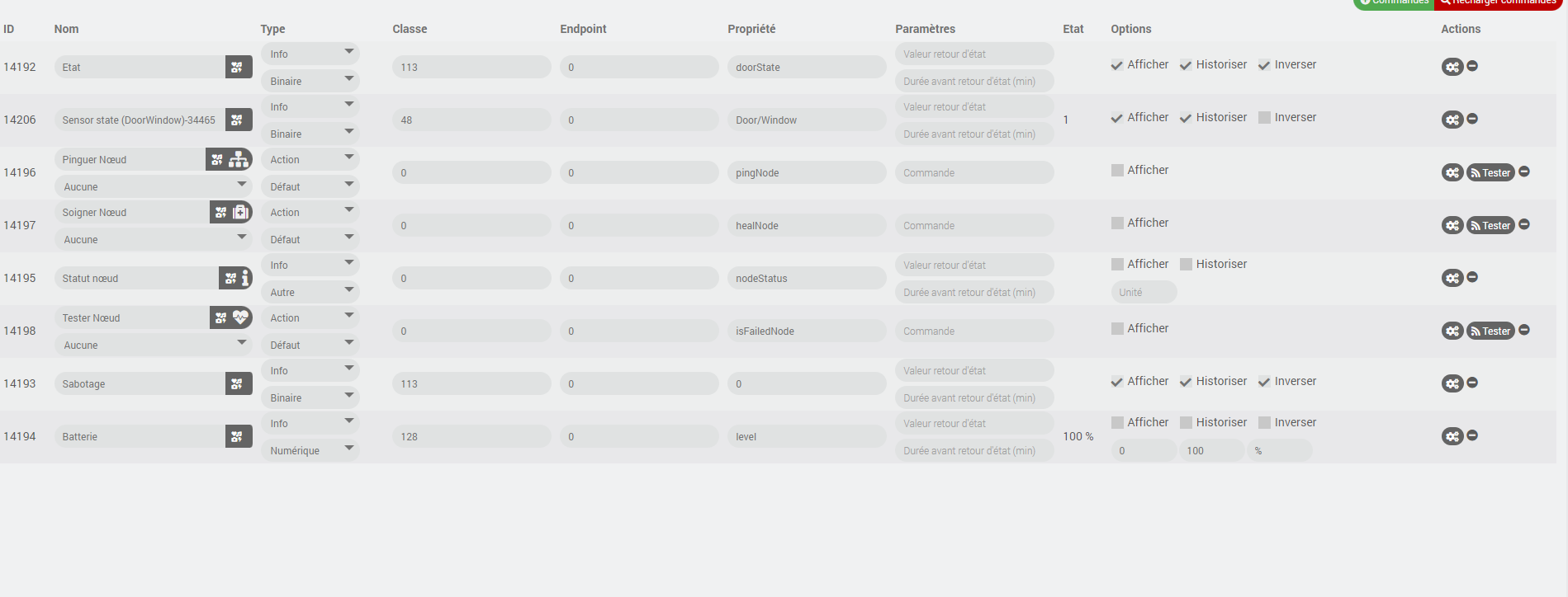 Hello, j’ai recréer les commande et me suis retrouvé avec les êmes valeurs de classe et endpoint que précédemment. J’ai aussi tenté de mettre Etat sur 48 à la place de 113 mais aucun changement.