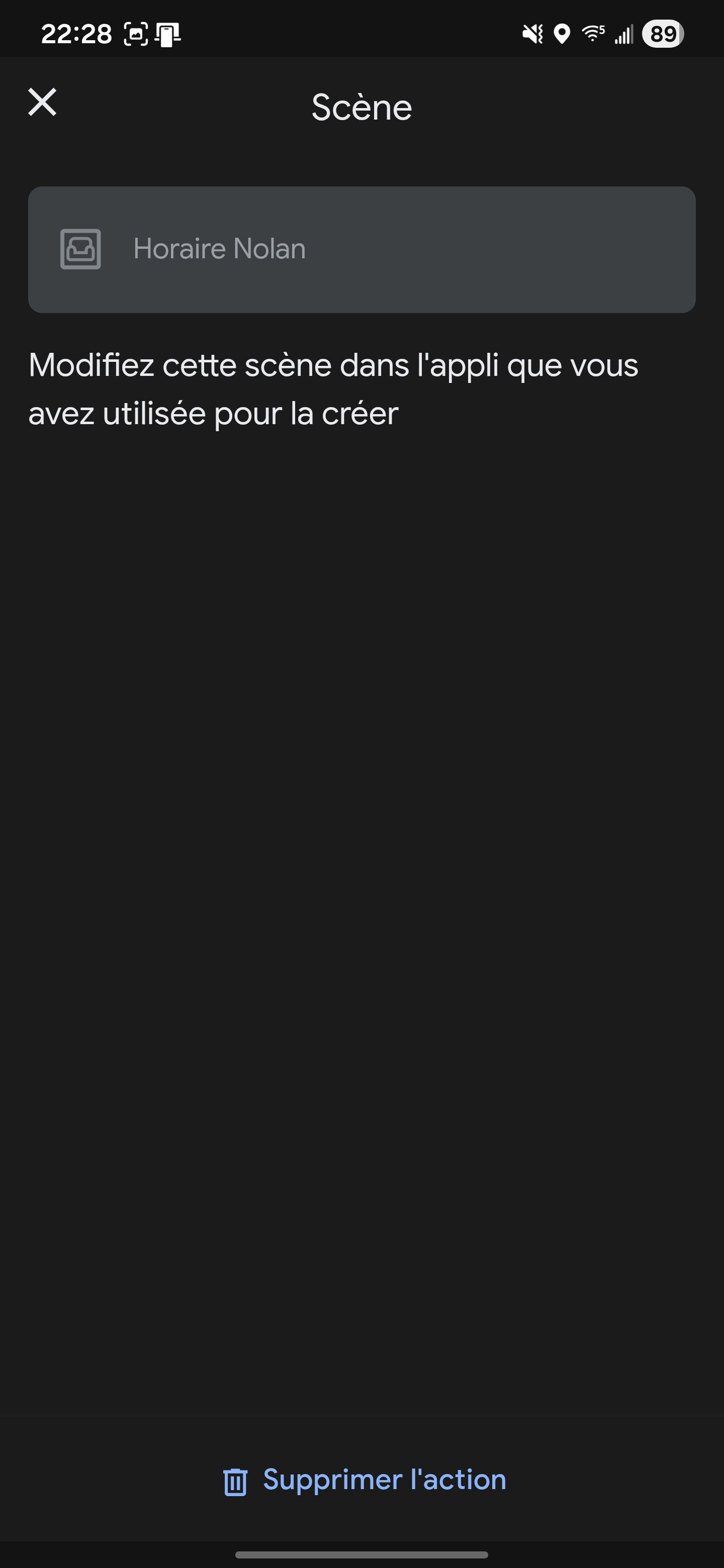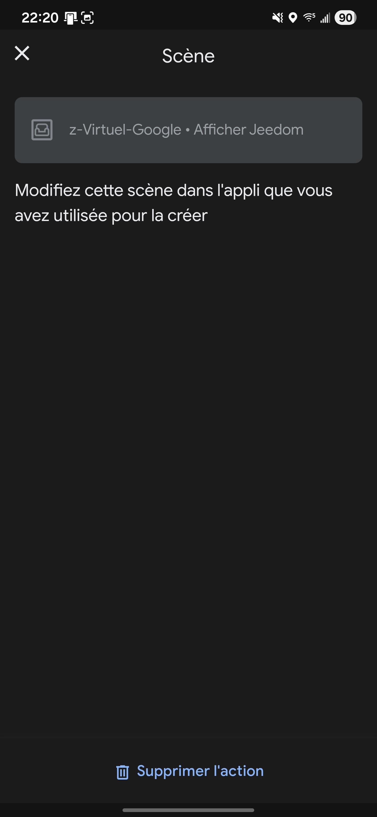 L’automatisation existe bien dans Google Home chez les autres utilisateurs mais l’action scène est absente.