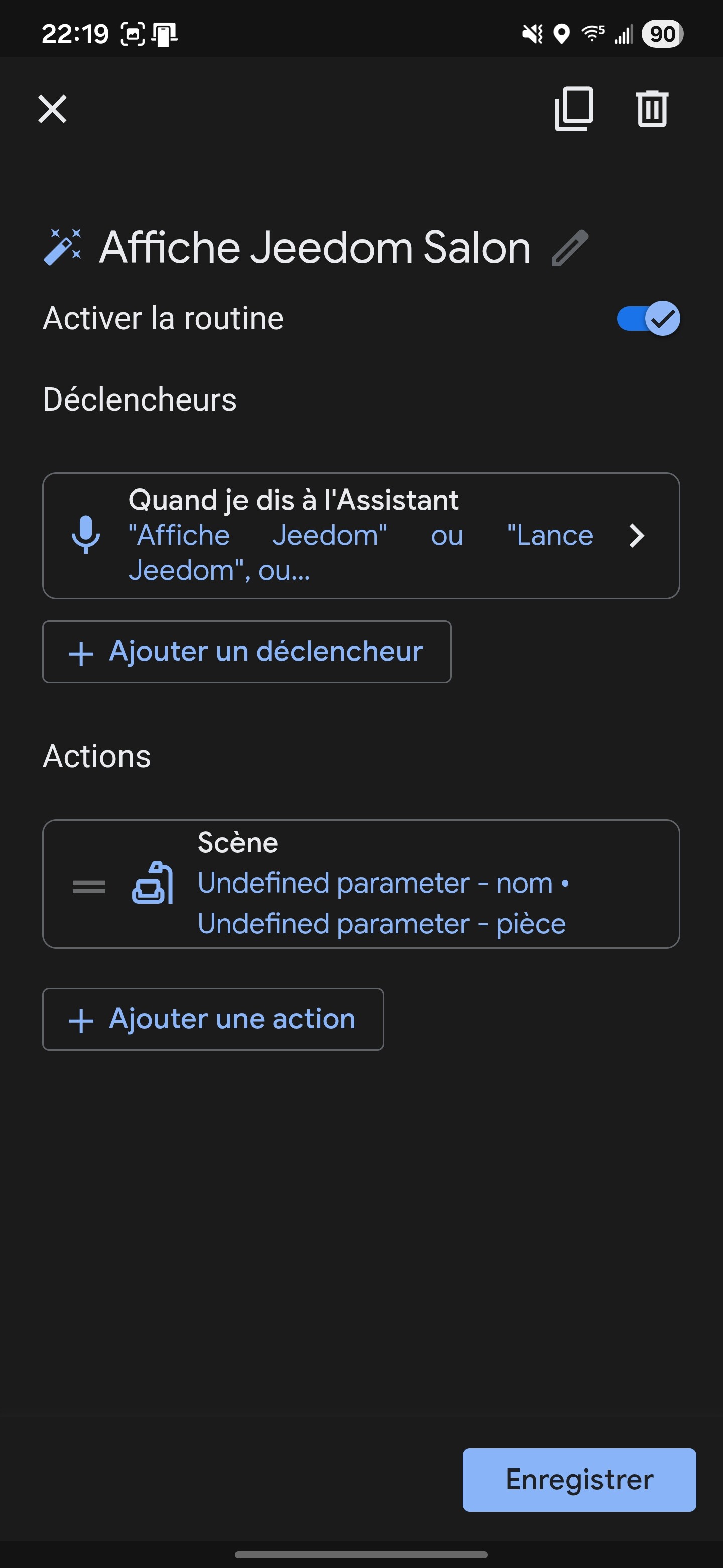 Mais en regardant les nouvelles scènes, malgré avoir défini une pièce dans Google Smart Home :