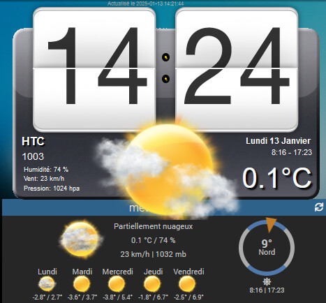 Sinon, vous pouvez jeter un œil sur le plugin WeatherForecast qui est une fusion d’horlogeHTC et weather avec les données météo d’OpenWeatherMap et weatherAPI.