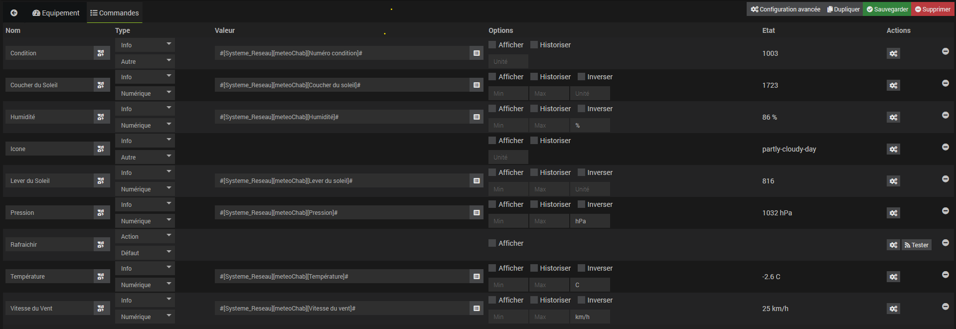 Les N°de condition que j’ai mis en place fonctionne puisque l’icone 1003 = partlycloudy est bien affiché.