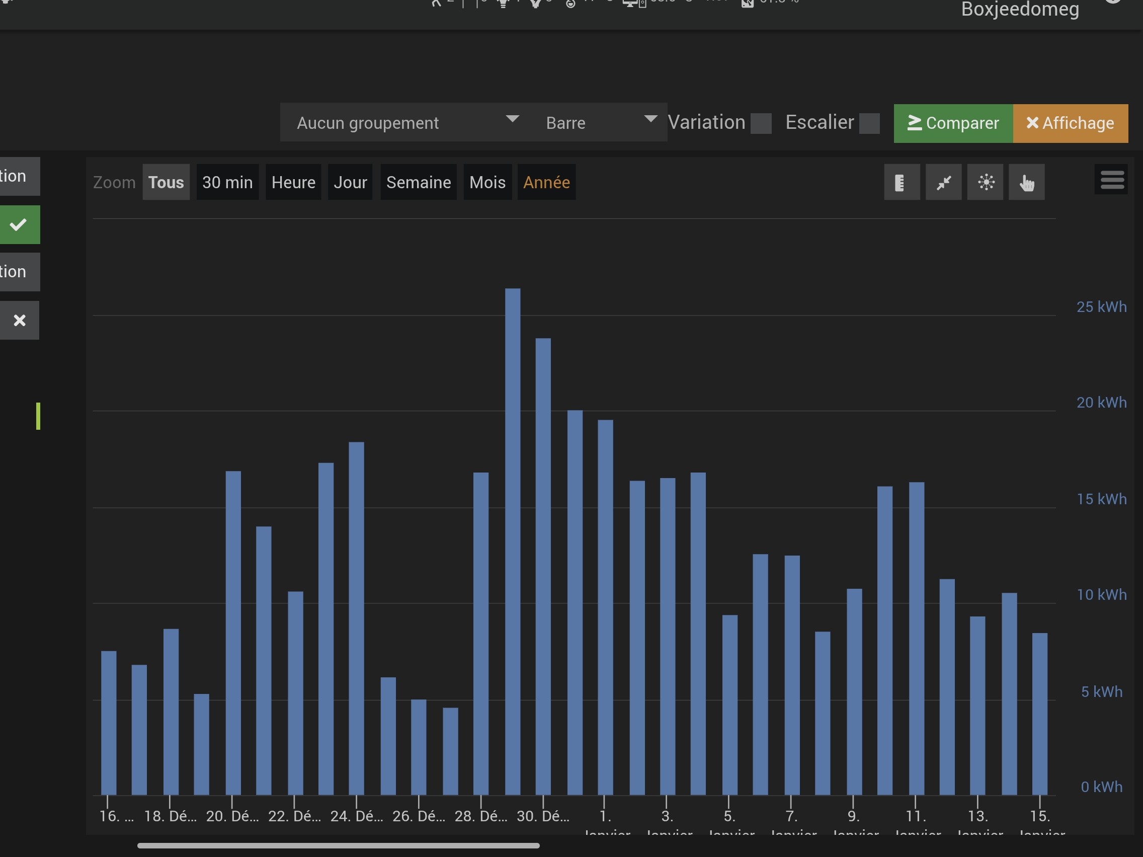 Aupire je vais juste me faire un virtuel pour calculer la différence de conso glissante par rapport à l’an dernier, et juste afficher la valeur.