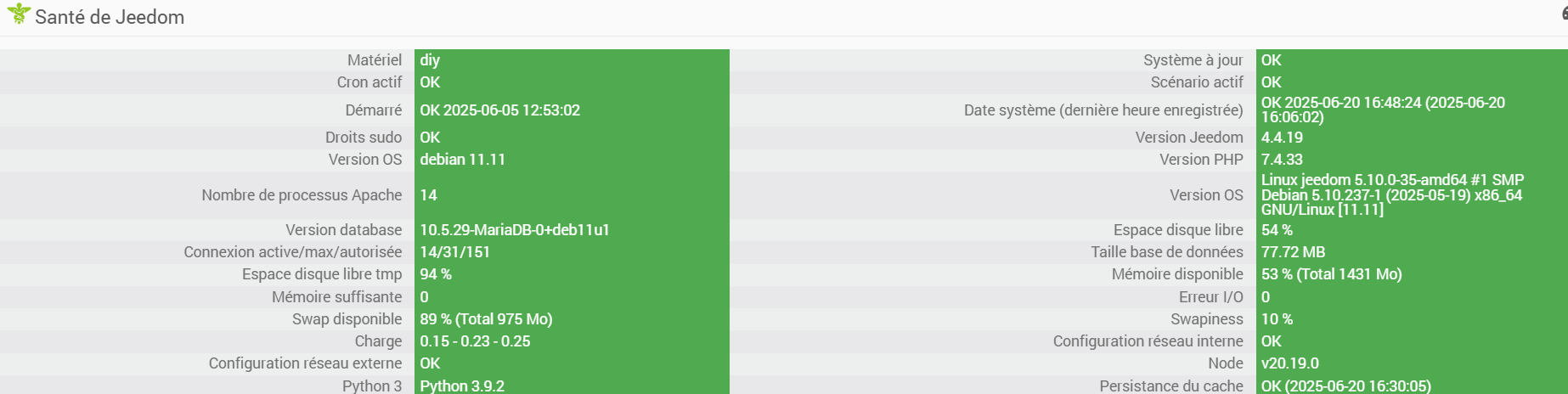 du coup il manque la page santé jeedom, comme je le répète tout le temps, à fournir à chaque demande;