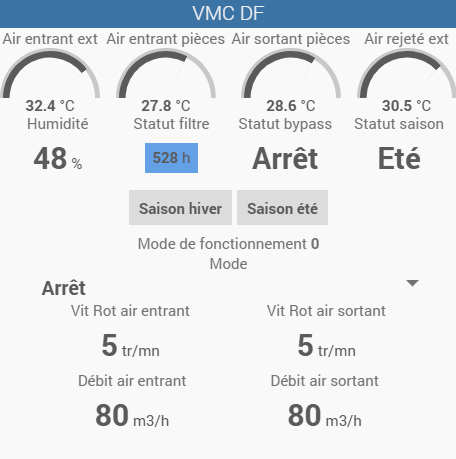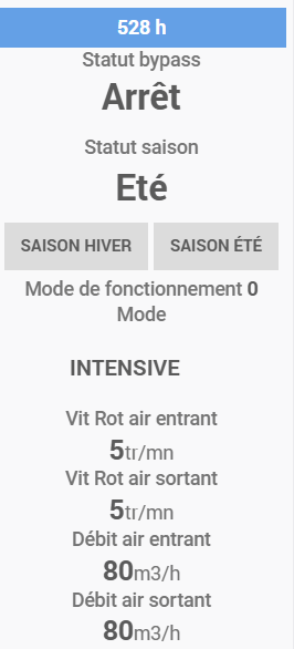 mais l’affichage n’est pas le même sur mon PC et sur mon tél mobile. Sur le PC on affiche Arrêt et sur le tél on affiche Intensive alors que ma VMC est réellement en arrêt donc sur 0.