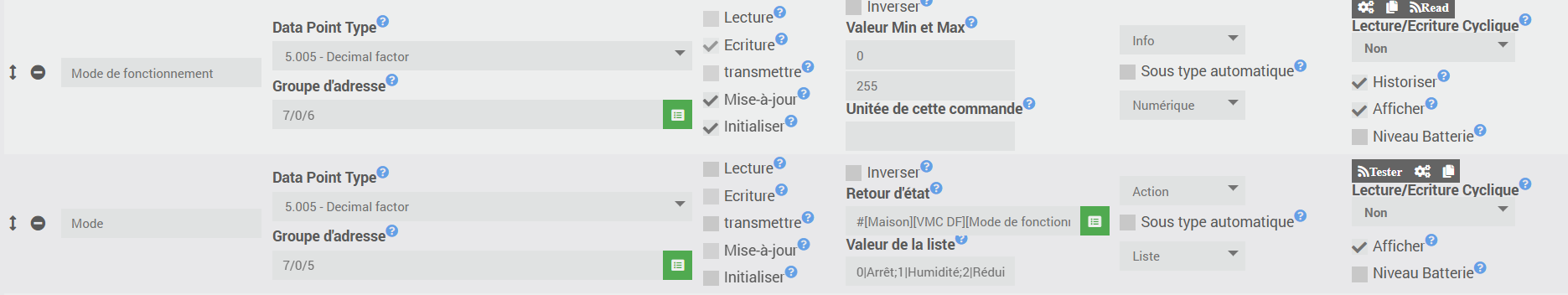 j’ai un équipement qui pilote ma VMC DF en KNX sur lequel j’affiche l’état de celle-ci avec une commande en liste sur son état 0|Arrêt;1|Humidité;2|Réduite;3|Nominale;4|Intensive