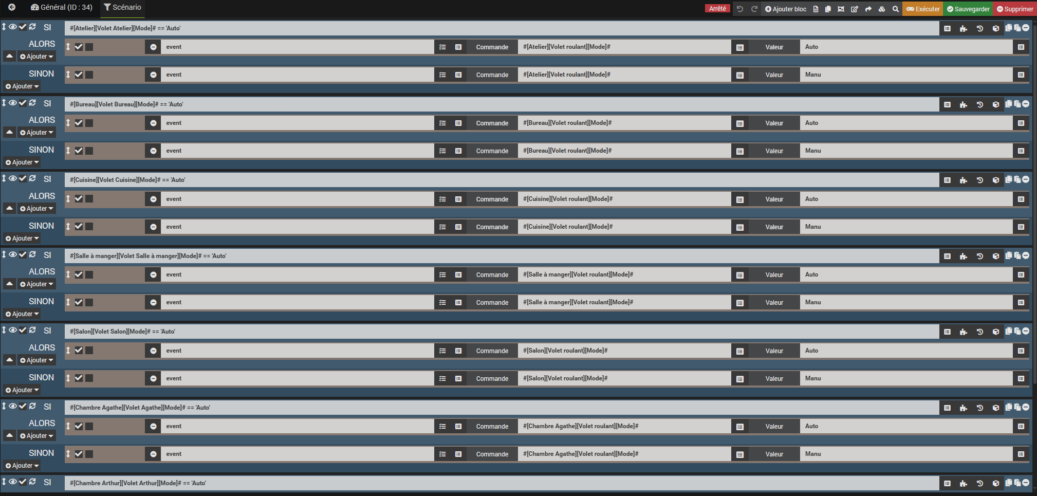 Il s’agit de rajouter un mode automatique ou manuel pour chaque volets de la maison (8 au total).