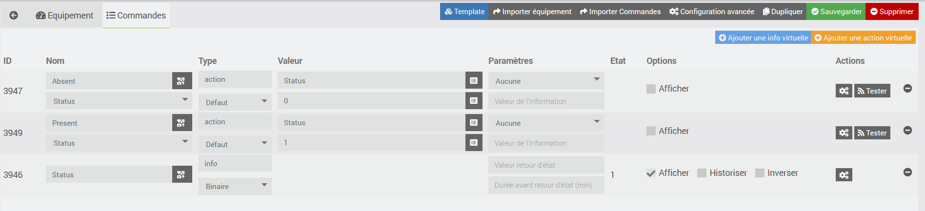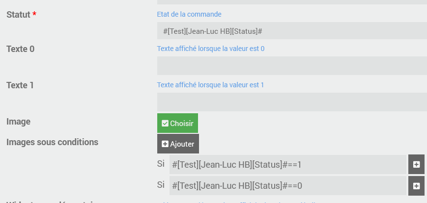 Toujours est-il que pour afficher sur JC juste l’info absent ou présent il suffit de créer un widget Générique Binaire et de l’affecter à la commande status.