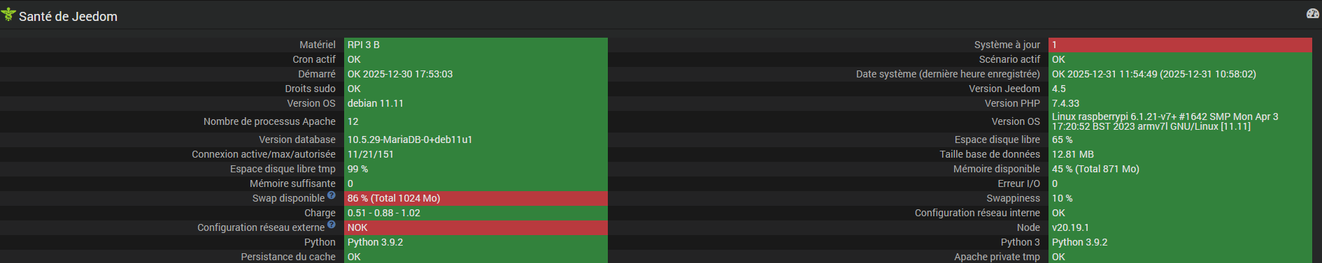 Dans ce cas, il faut investiguer donc ca commence par envoyer la page Santé de votre Jeedom.