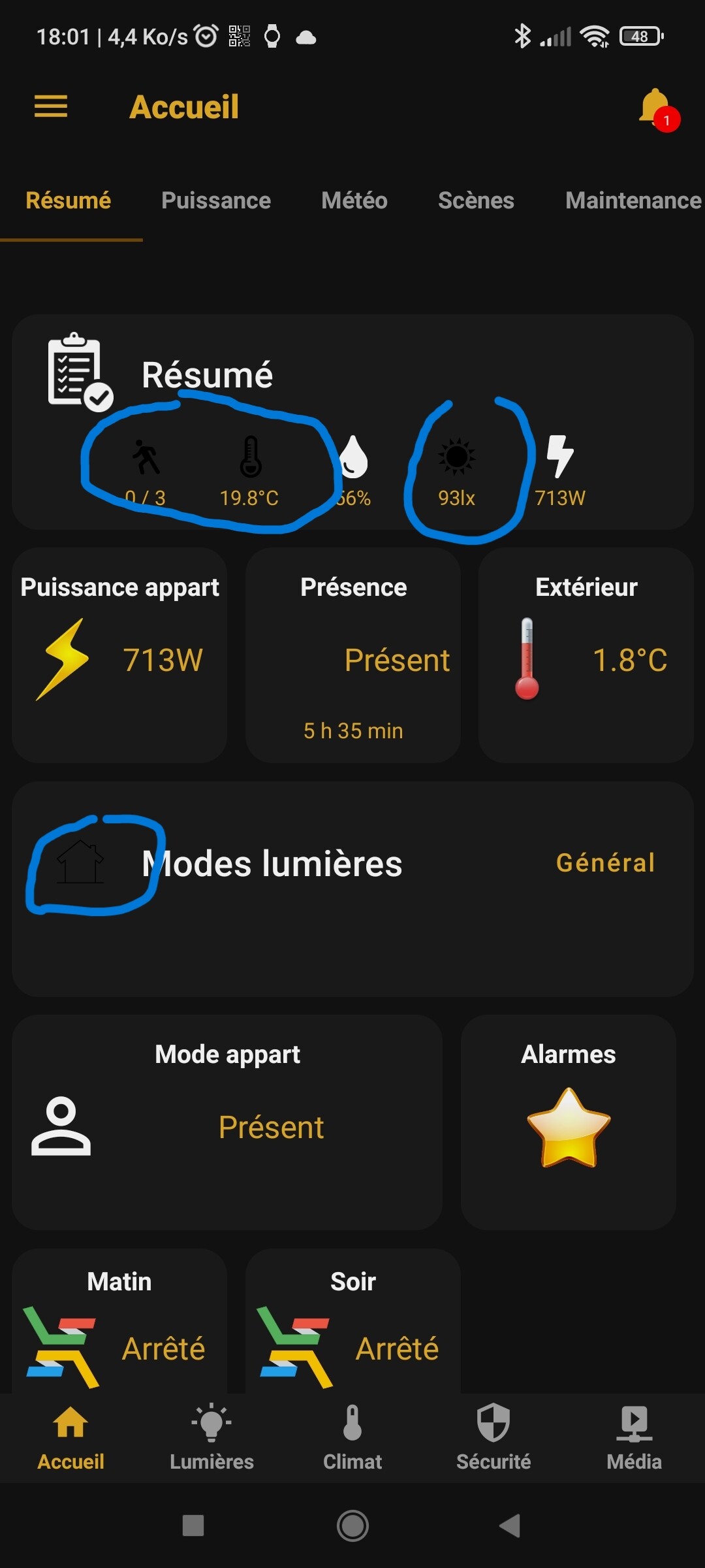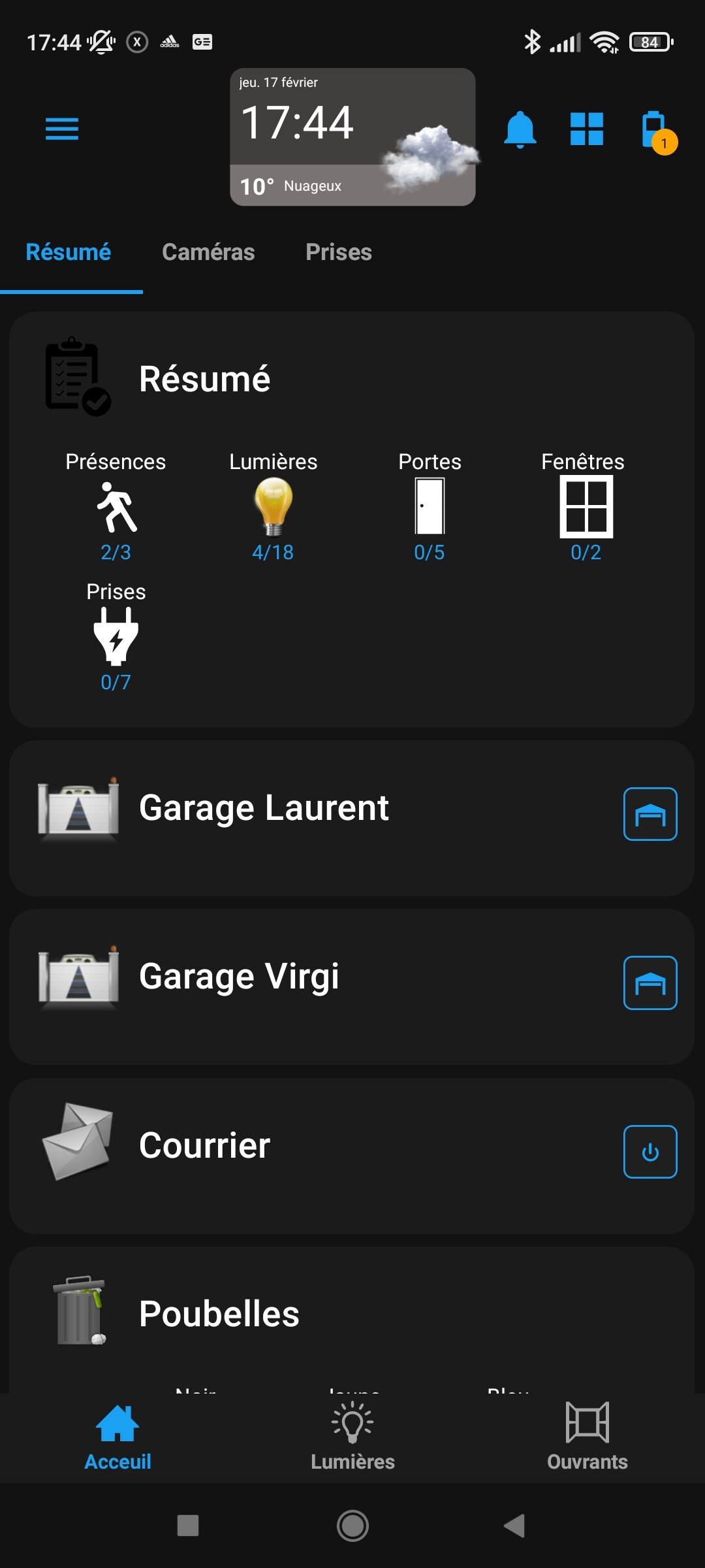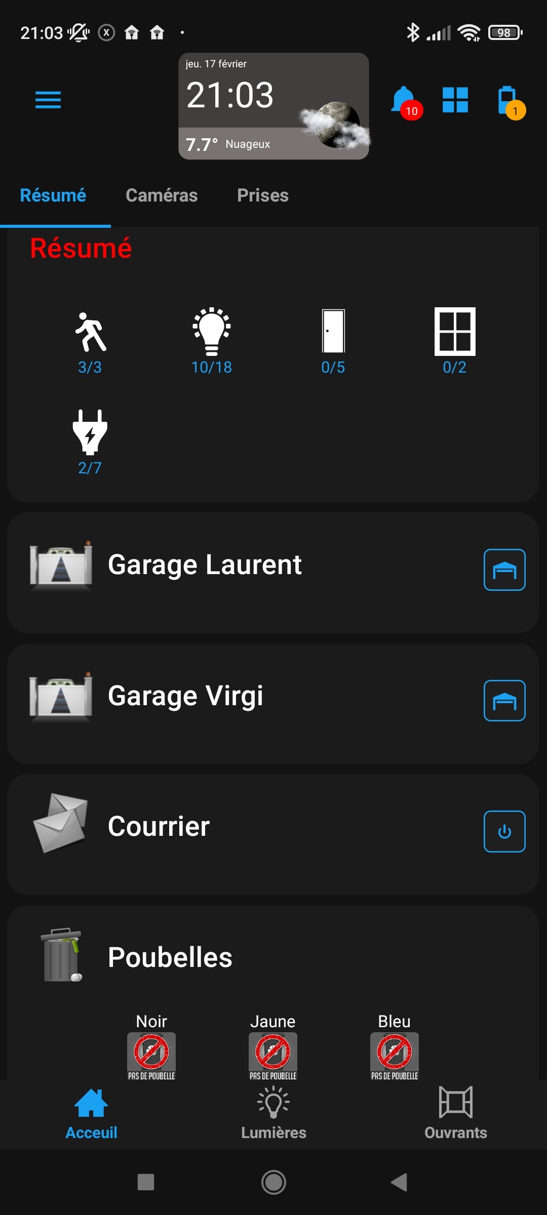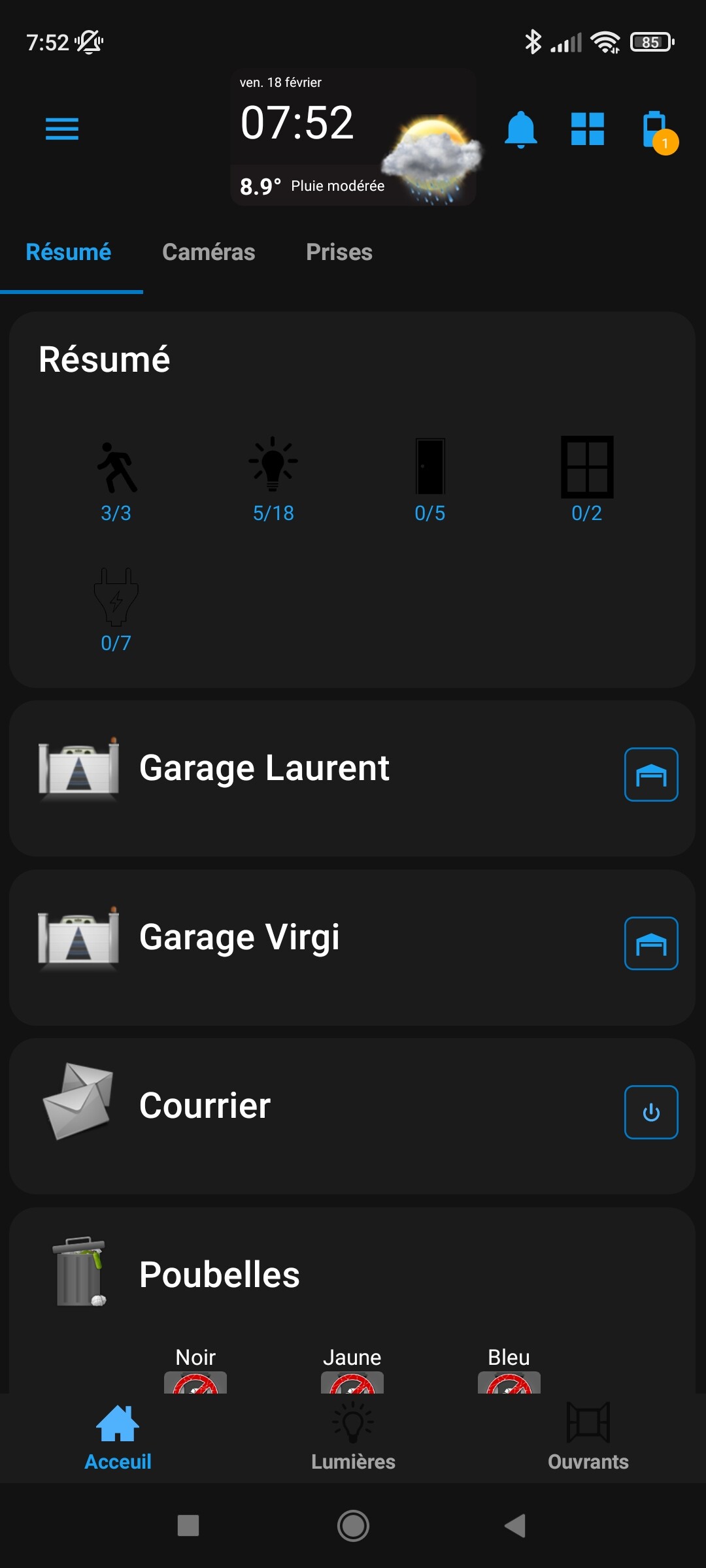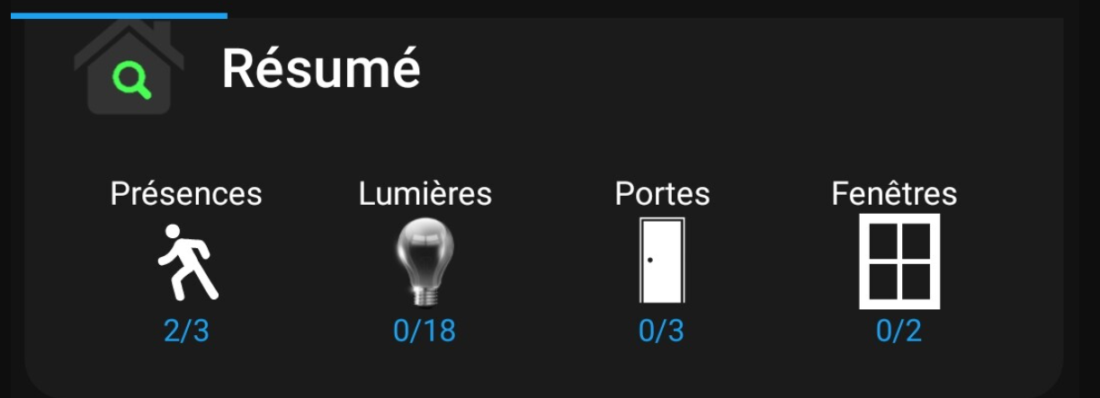 Des widgets pour les différentes lampes => ensuite un groupe qui reprend tout => et pour finir je le place dans un résumé avec portes, fenêtres…(j’ai fait pareil pour les portes-fenêtres…)