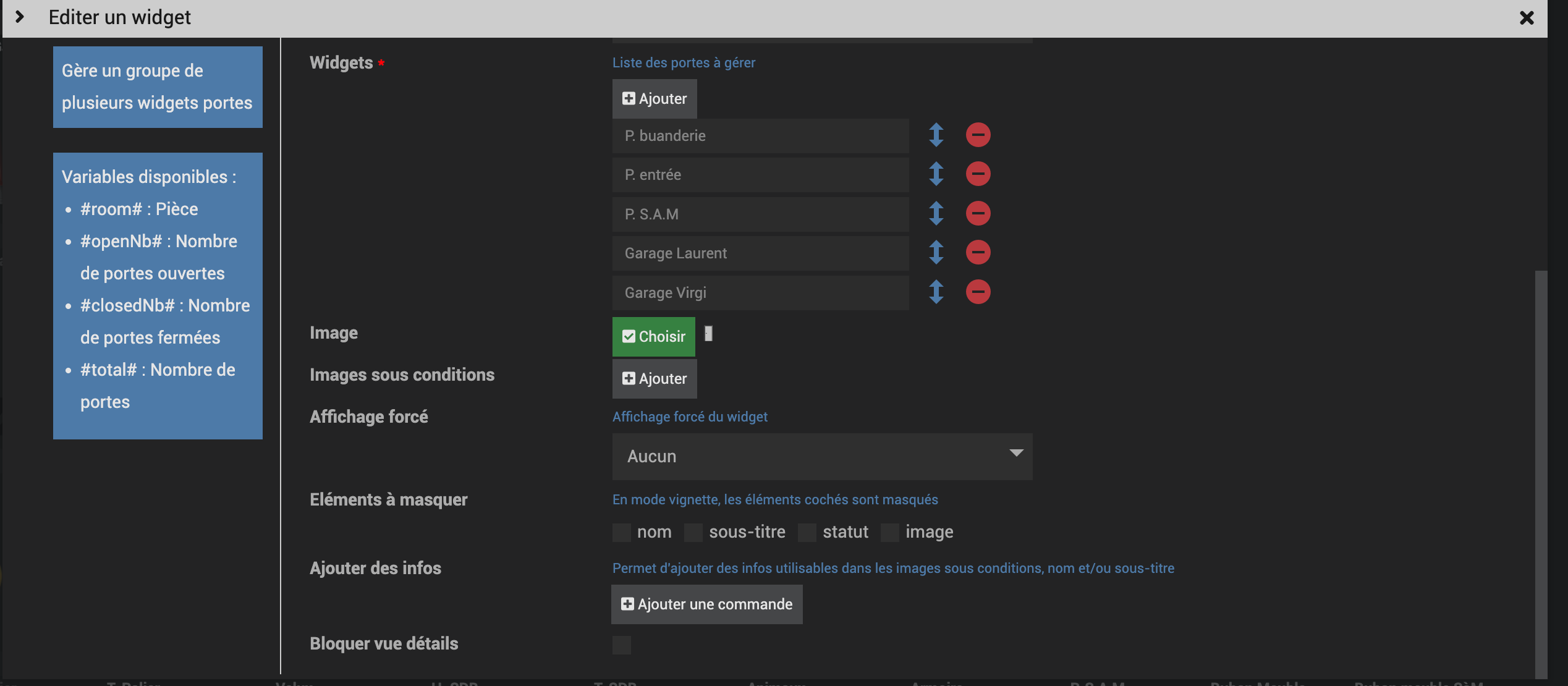 Oui dans les widgets j’ai bien des images sous conditions pour les lampes mais comment faire quand ca se passe dans un groupe puisque après je remets ce groupe dans le résumé