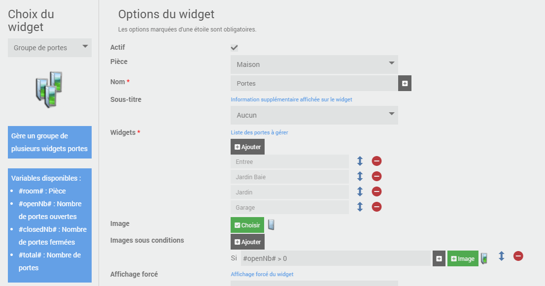 il faut que tu définisses tes conditions au niveau du widget. Que ca soit un widget unitaire (=> une seule porte) ou que ce soit un groupe (=> groupe de porte)