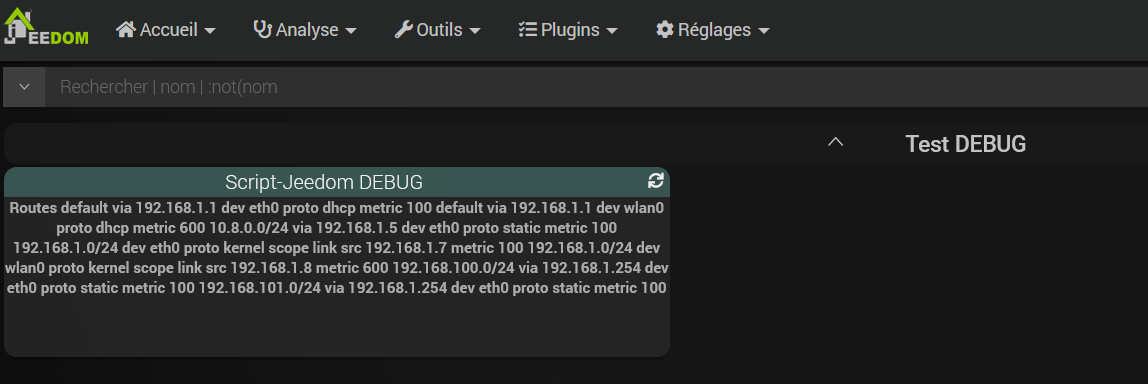 Juste pour signaler un drôle de comportement d’affichage sur le plugin Script sur les retours d’info SSH.