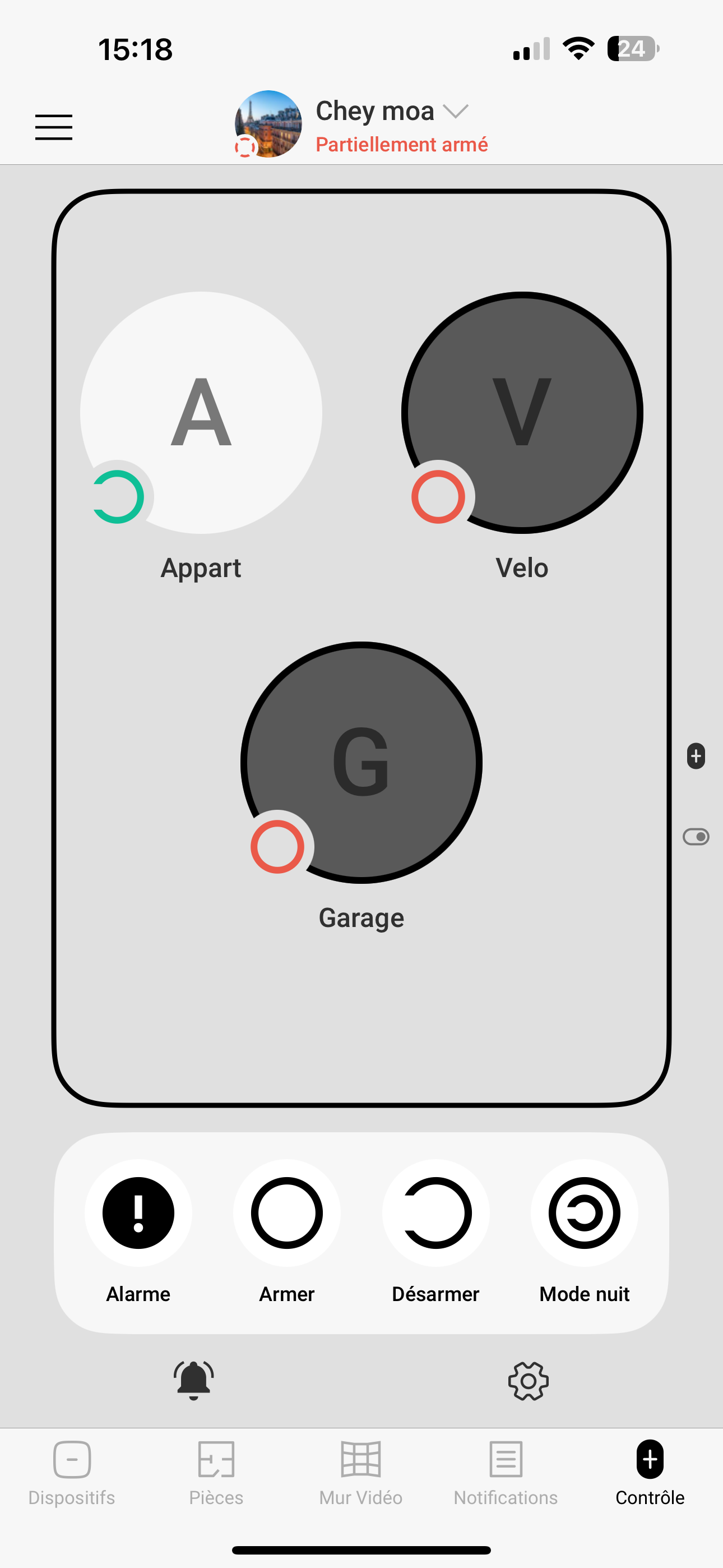 qui changeraient de couleur en fonction de l’état ( armé, mode nuit, désarmé )