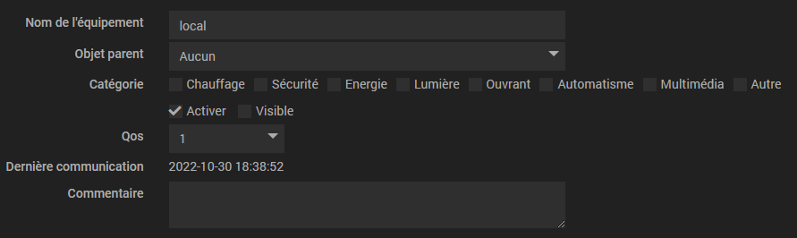 Pour ça il faut créer une commande action et mettre l’info que l’on souhaite publier dans le payload et à chaque changement de l’info, la valeur est publiée.