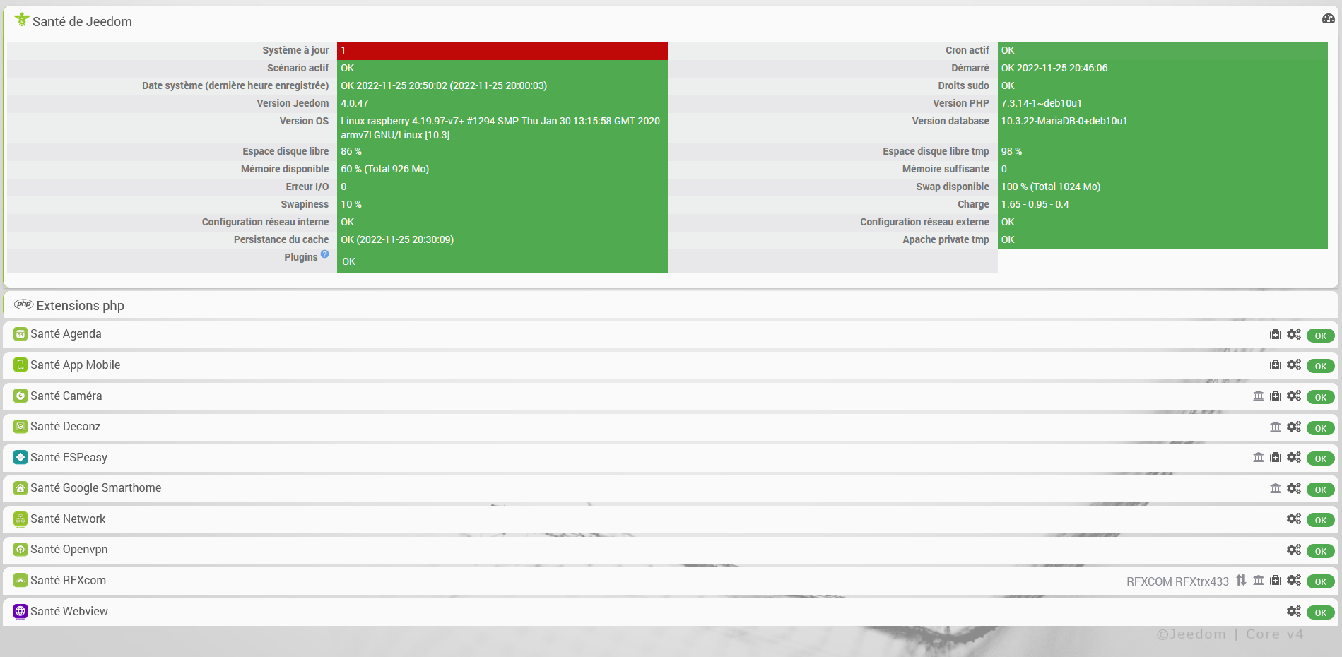 tous mes plugin sont en défauts , 6 NOK , et cron actif NOK… j’essaye de faire repartir l’existant avant d’essayer de faire marcher le deconz