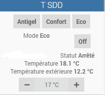 moi je l’ai intégré également avec mon plugin thermostat jeedom (action sur les boutons modifie la consigne jeedom, et il est également la sonde de t°)