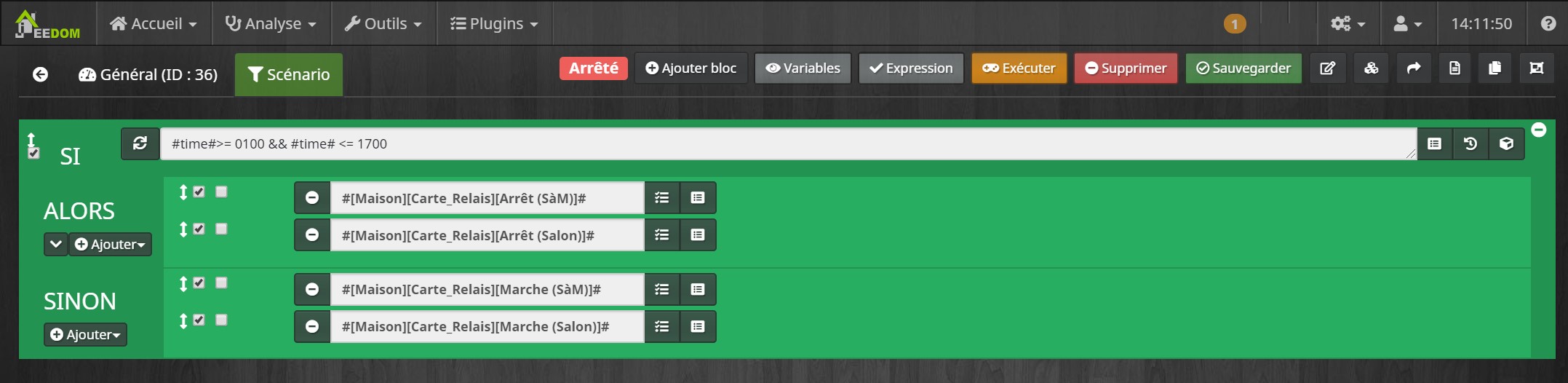 Mais malheureusement à 17h00, les relais restent ouverts au lieu de se fermer. Pourriez vous me dire si la syntaxe (ou le contenu) de mon scénario est bon?