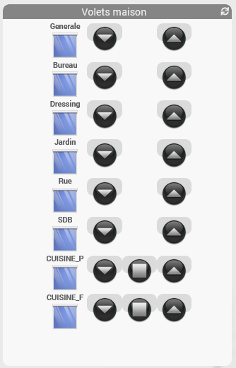 première ligne une action ouvert et fermer qui change l’état du volet (icone) ce même icone change d’etat si un des etat des volets en dessous vient à changer.