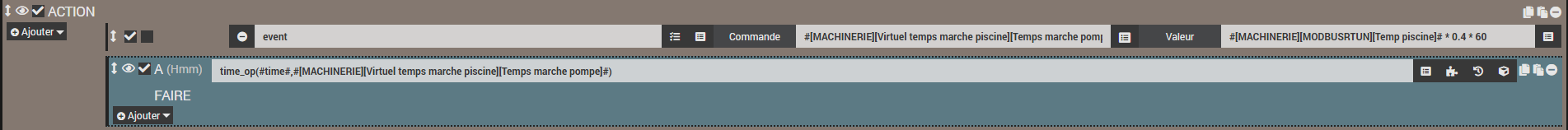#time# + #[MACHINERIE][MODBUSRTUN][Temp piscine]# * 0.4 * 60