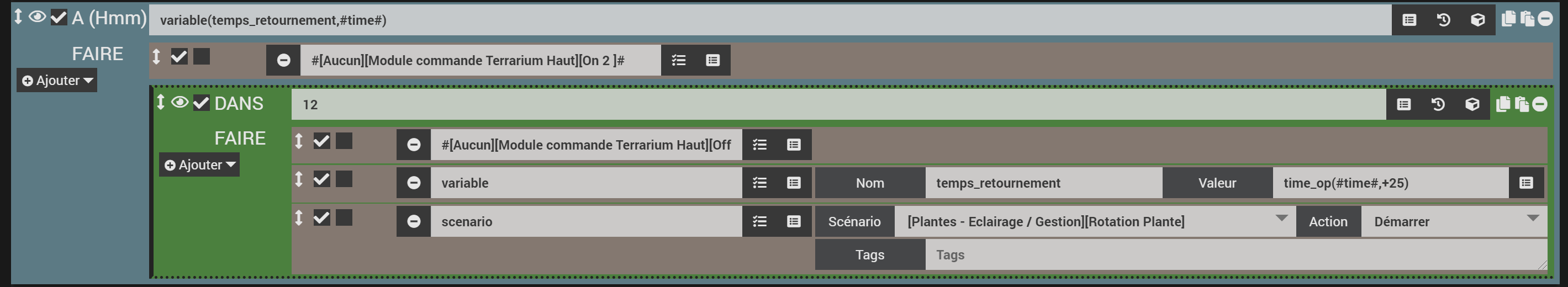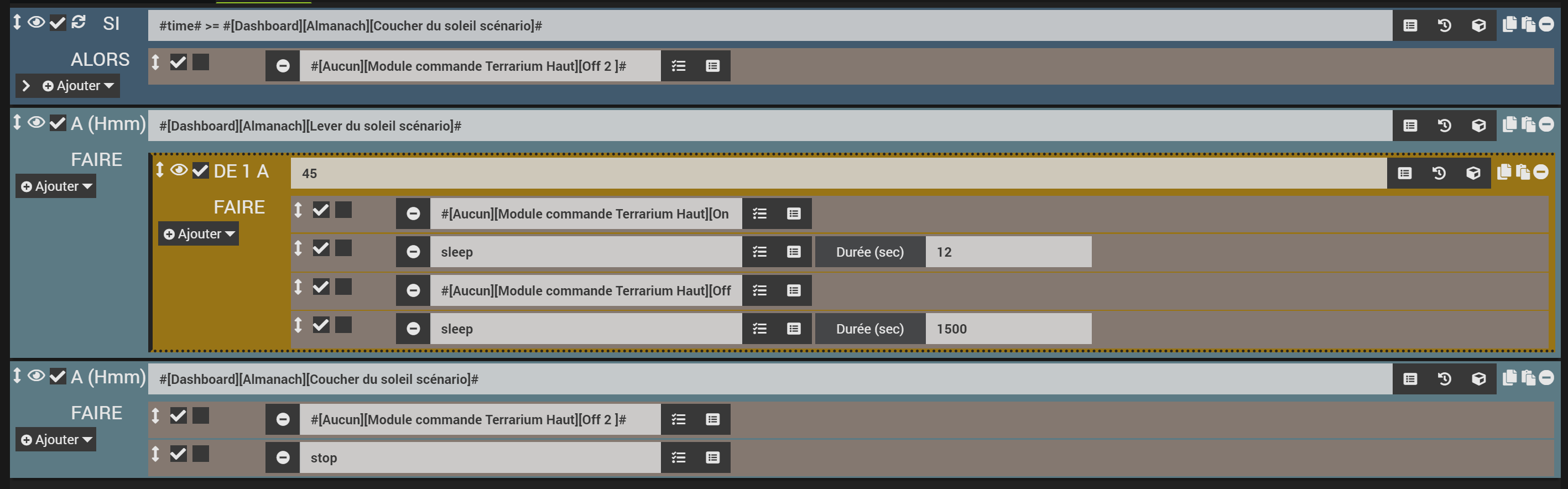 Au coucher du soleil fait : « Désactivation du deuxième scénario »
