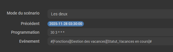 Un de mes scénario se lance soit en raison d’une programmation, soit en raison d’un événement particulier.