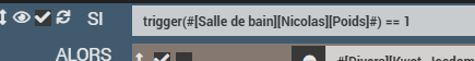 #trigger_value# (déprécié, mieux vaut utiliser triggerValue()) : Pour la valeur de la commande ayant déclenché le scénario