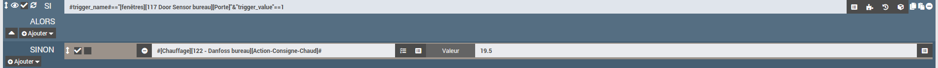 [2025-12-08 15:16:43][SCENARIO] - Exécution du sous-élément de type [condition] : if #trigger_name# == "[fenêtres][117 Door Sensor bureau1][Porte]" ET #trigger_value# == 1