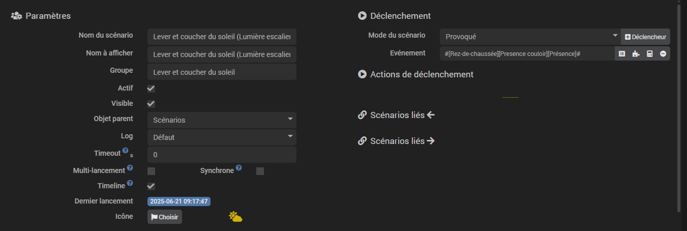 [2025-06-21 11:17:38][SCENARIO] -- Début : Scenario execute automatiquement sur evenement venant de : [Rez-de-chaussee][Presence couloir][Presence] (1).
