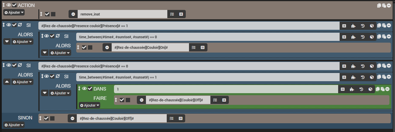 [2025-06-21 12:38:45][SCENARIO] - Exécution du sous-élément de type [condition] : if #[Rez-de-chaussée][Presence couloir][Présence]# == 0