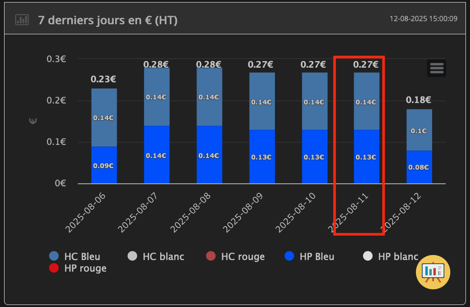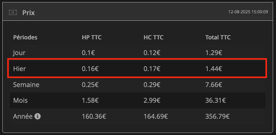 Le tableau nommé « Prix » tout en haut à gauche du plugin indique les valeurs identiques à EDF et moi, cf. ci-dessous :