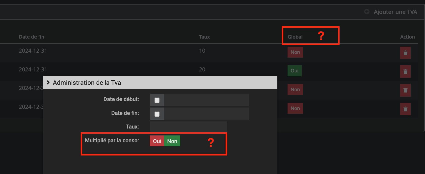 → Que signifie l’option « global » ? et « multiplié par la conso » ?