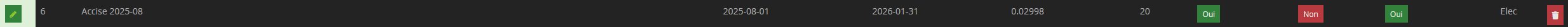 Il faut appliquer l’ACCISE sur les montant HT, soit +0.02998€ HT à chaque tarif, avant d’ajouter les +20% de TVA