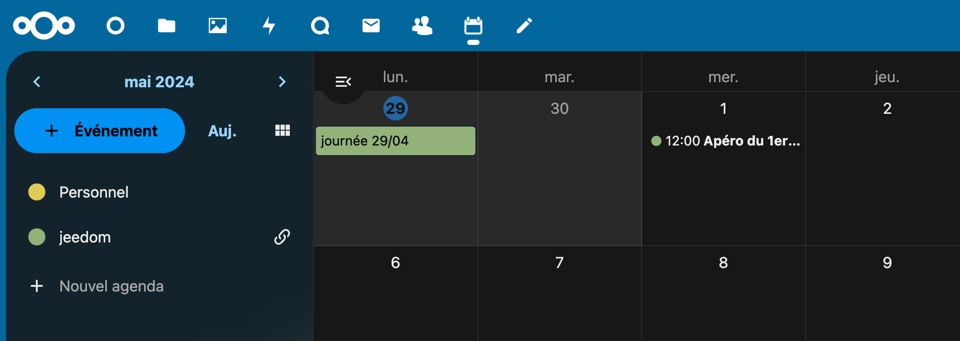 - et donc avoir une synchronisation automatique au niveau du plugin agenda officiel Jeedom lors de modifications dans l’agenda NextCloud
